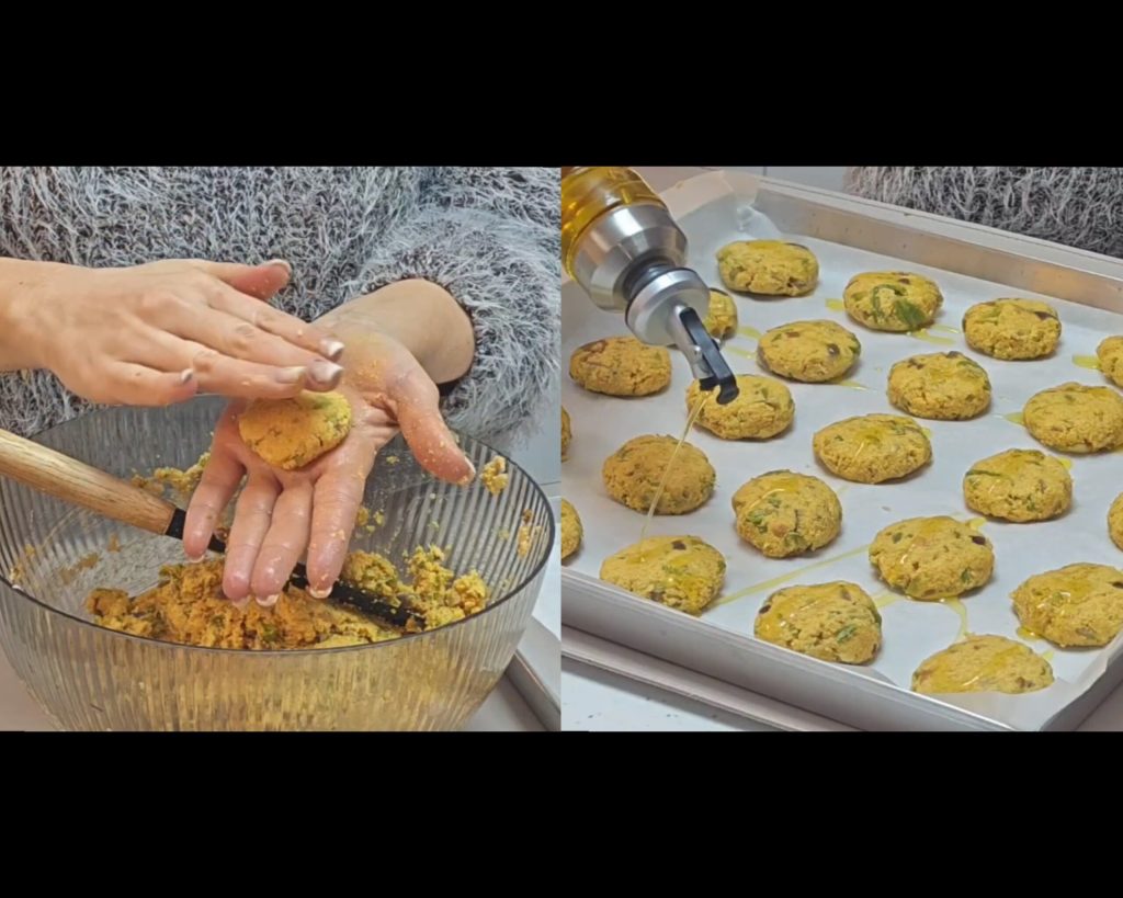 Bake in a preheated oven at 356°F for about 20 minutes, until they are golden and slightly crispy on the outside.