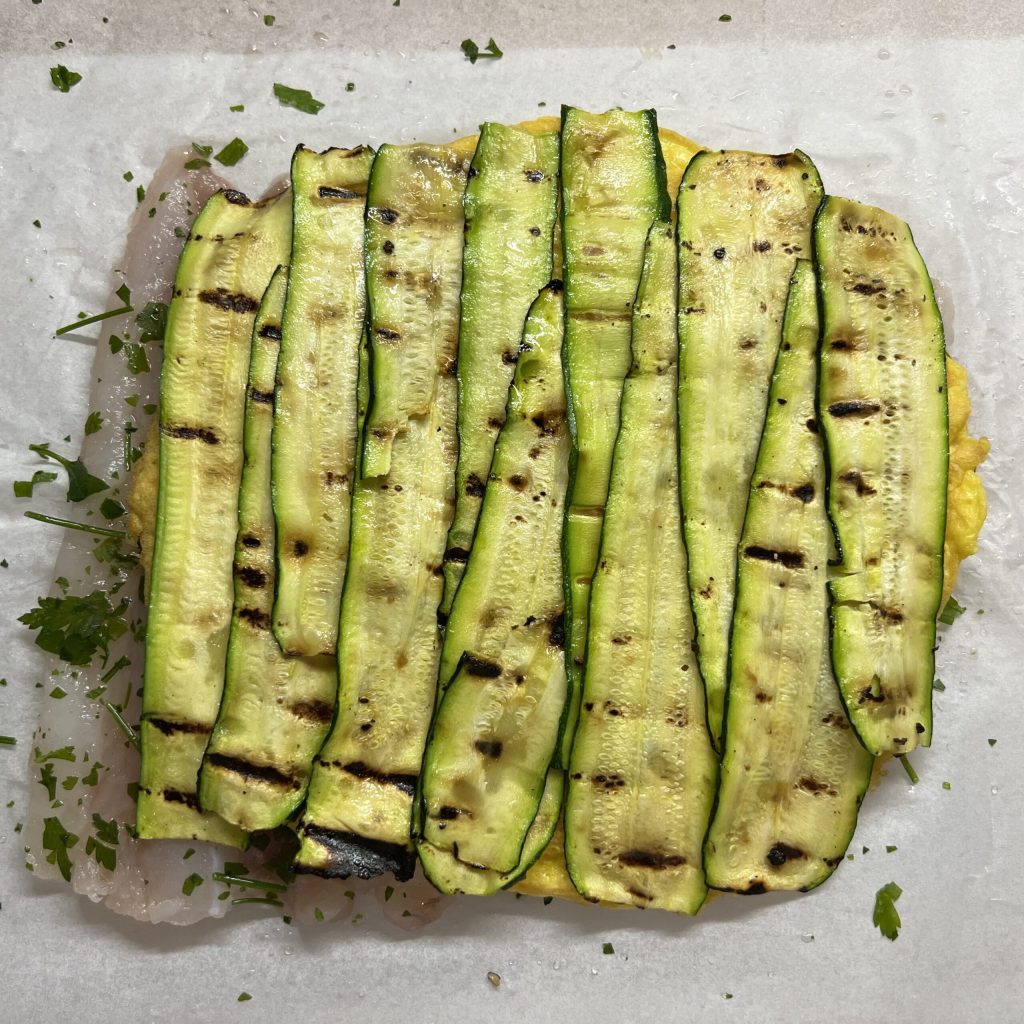 Cover everything with the grilled zucchini