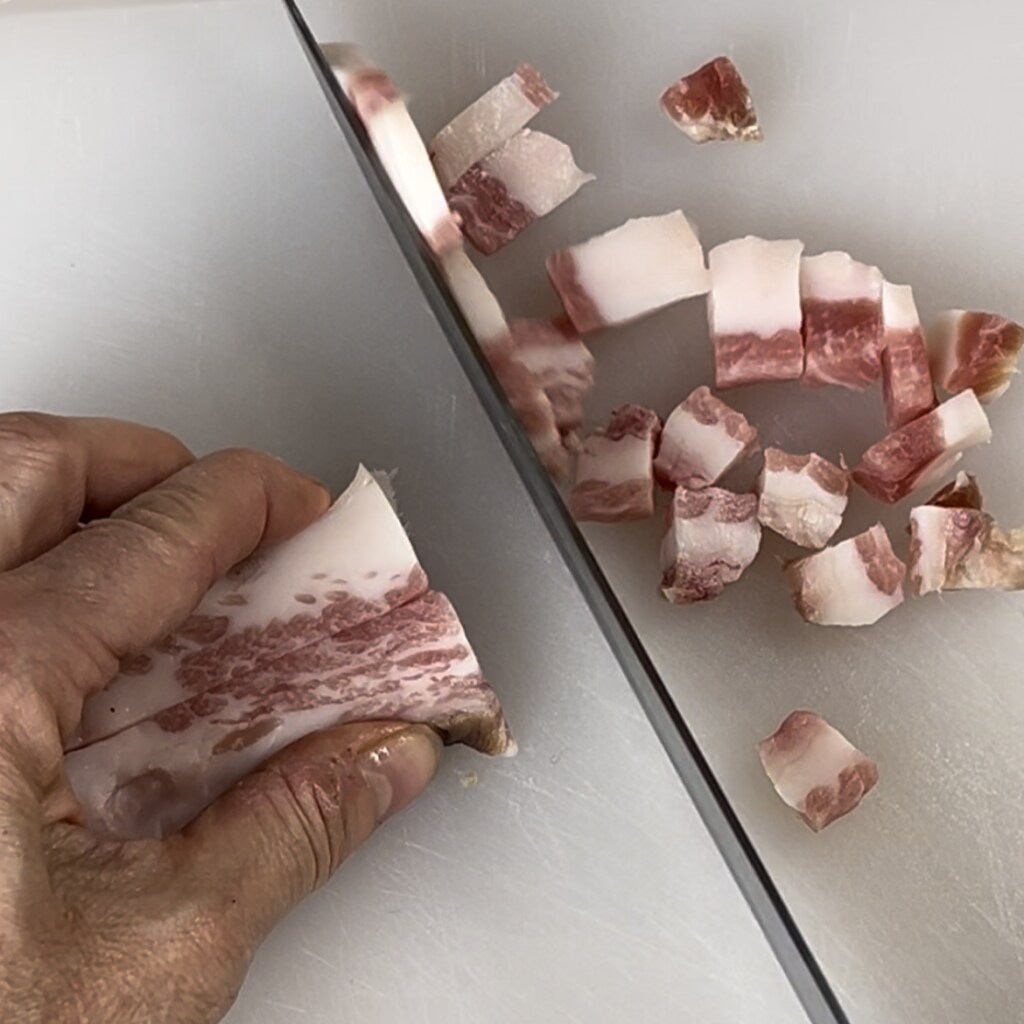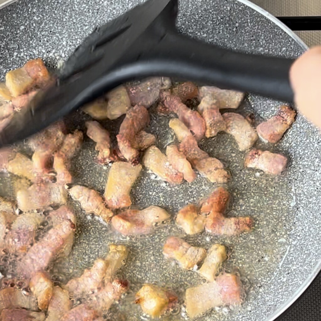 Sauté the guanciale in a non-stick pan without any seasoning until golden and crispy