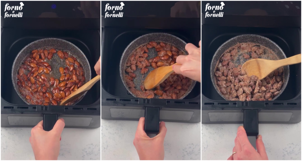 Making them is really simple and requires very few ingredients: almonds, sugar, water, and a pinch of vanilla to add an extra aromatic touch. The air fryer allows you to get perfectly golden and crunchy almonds without having to sauté them in a pan or bake them for too long. In a few minutes, you’ll have a perfect sweet snack to enjoy anytime or to offer friends during a special evening.