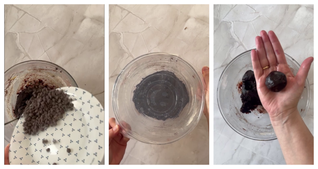 • Finally, add the chocolate chips, and mix again. Once all the ingredients are combined, cover the bowl and let it rest in the fridge for 1 hour. Take the dough and create 1.2 oz balls.