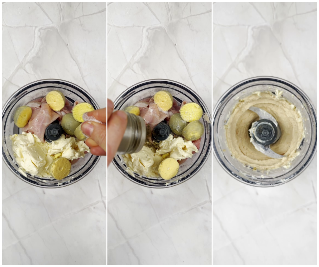 Add salt and pepper and blend everything until you get a smooth and creamy mousse-like mixture.