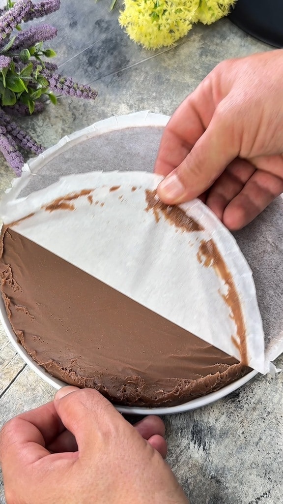 Pour the obtained cream into a 8-inch springform pan lined with parchment paper. Level the surface well and let it cool in the fridge for at least 2 hours.