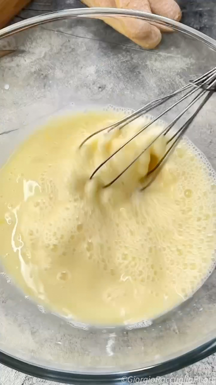 Do not soak the ladyfingers: the mixture will make them soft during baking. Place them dry directly on the pastry.