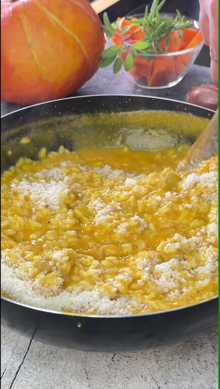 Gratinated risotto with pumpkin and sausage is a rich and flavorful dish, perfect for autumn and winter months when pumpkin is in season and you seek something comforting and hearty. This recipe combines the natural sweetness of pumpkin with the intense and rustic flavor of sausage, creating a contrast of flavors that makes the dish extremely appetizing.
