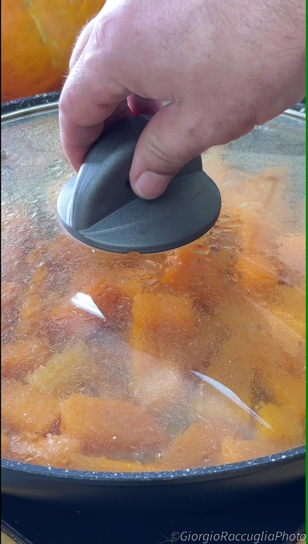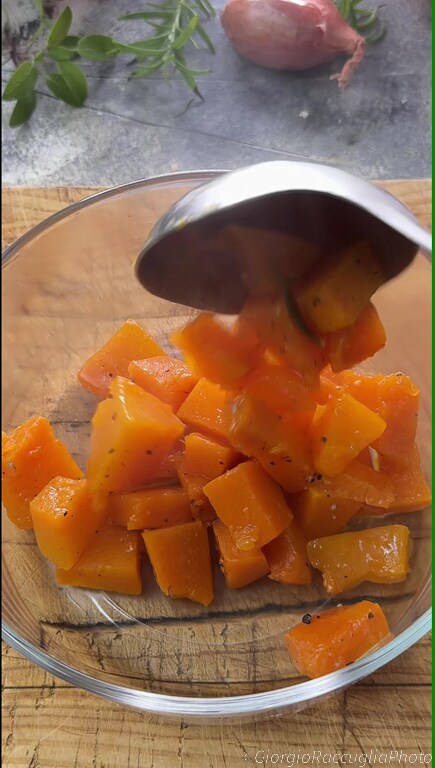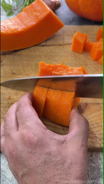In the same pan, cook the pumpkin with a drizzle of oil,