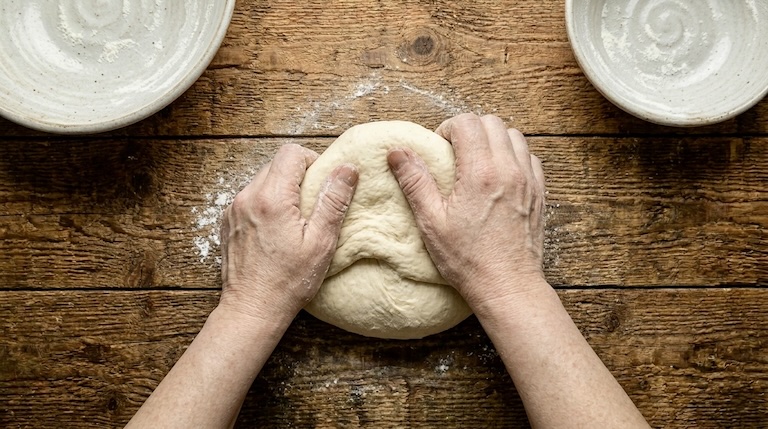 Knead vigorously for about 5 minutes until you get a smooth, soft ball. This step makes the dough homogeneous and easier to work with later.