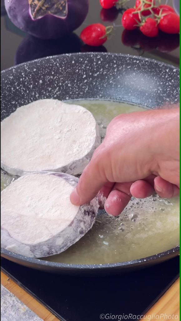 Flour the eggplant slices and