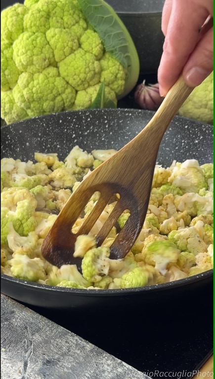 Pan-fried cauliflower is a simple and humble Italian dish, but rich in flavor, perfect for enhancing one of the most versatile vegetables of the season. This recipe combines the delicacy of cauliflower with the intensity of anchovies in oil and the enveloping aroma of garlic, enriching it all with a touch of tomato paste for a fuller taste. With just a few genuine ingredients – cauliflower, extra virgin olive oil, garlic, anchovies, tomato paste, and a bit of water – you’ll get a light and tasty side dish, ideal for accompanying meat or fish dishes, or to enjoy alone for a simple and satisfying meal. Below you’ll find more recipes with cauliflower.