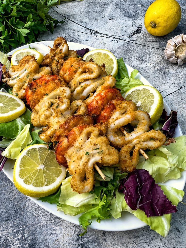 Crispy, light and ready in minutes: squid and prawn skewers in the air fryer are an easy and quick seafood main course, perfect for anyone looking for a healthy yet tasty recipe. Thanks to air frying they become crispy on the outside and tender on the inside, using very little oil and without traditional frying.