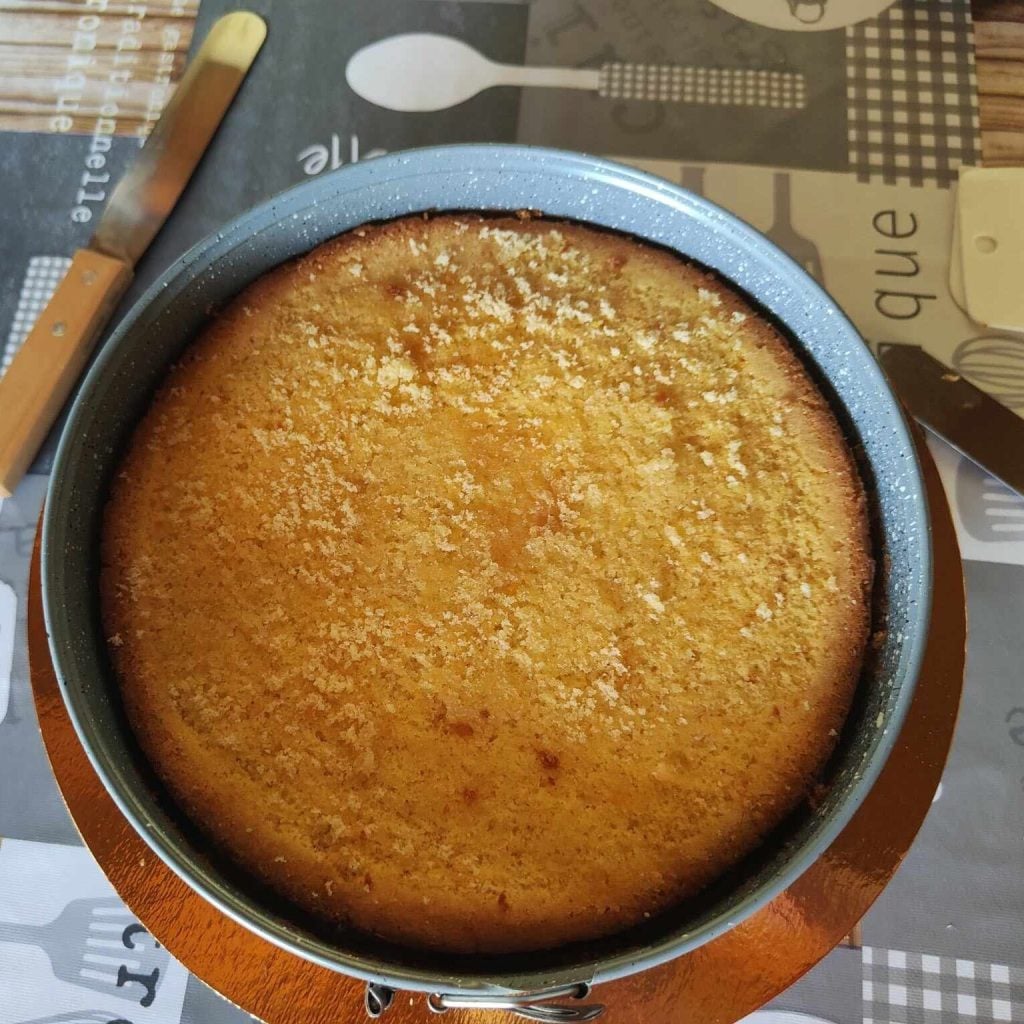 Bake in a preheated static oven at 356°F for about 40 minutes (or in a fan oven, at 320°F for about 30-35 minutes), until the surface of the sponge cake is golden (if it tends to darken too much, cover the cake tin with baking paper and a sheet of aluminum on top).