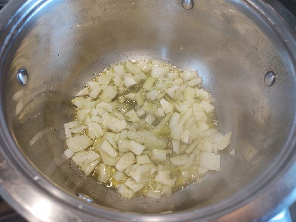 Add the onion (if you haven’t used it all in the broth) and let it lightly brown along with the diced carrot.