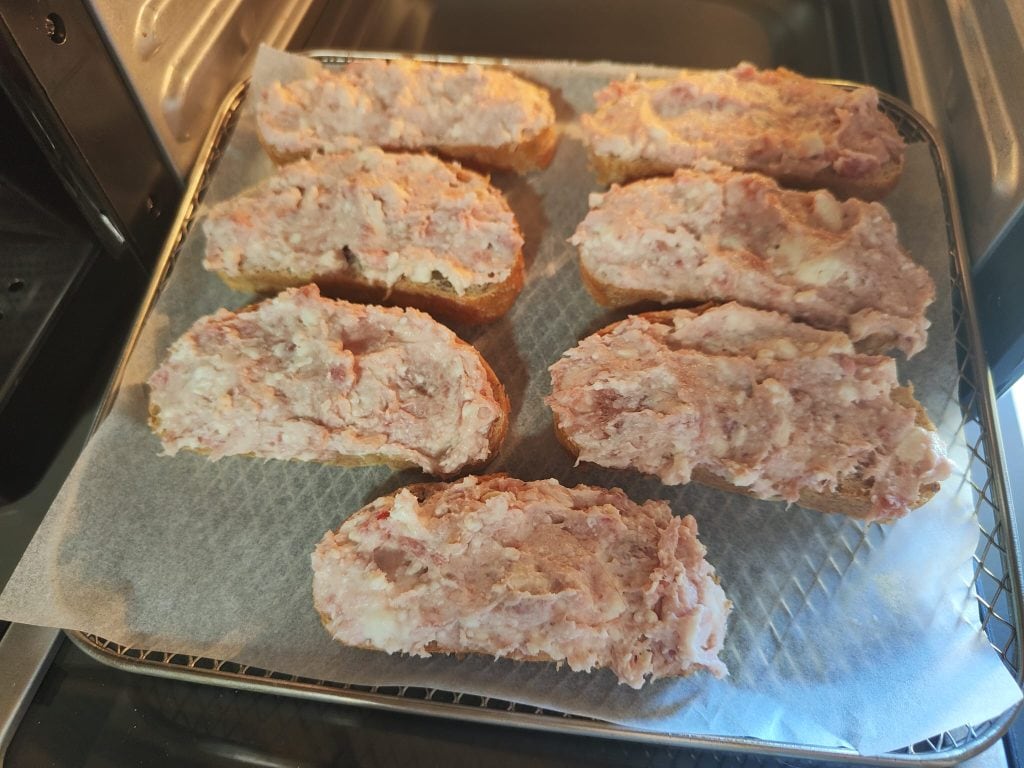 A knife, a fork, an oven and the crostini with sausage and stracchino are ready! Eaten hot, they are poetry… they crunch, melt in your mouth, and one leads to another!
