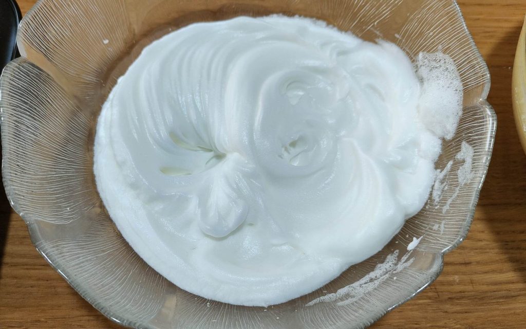 Once the egg white is well incorporated, add the remaining egg white and fold from bottom to top.