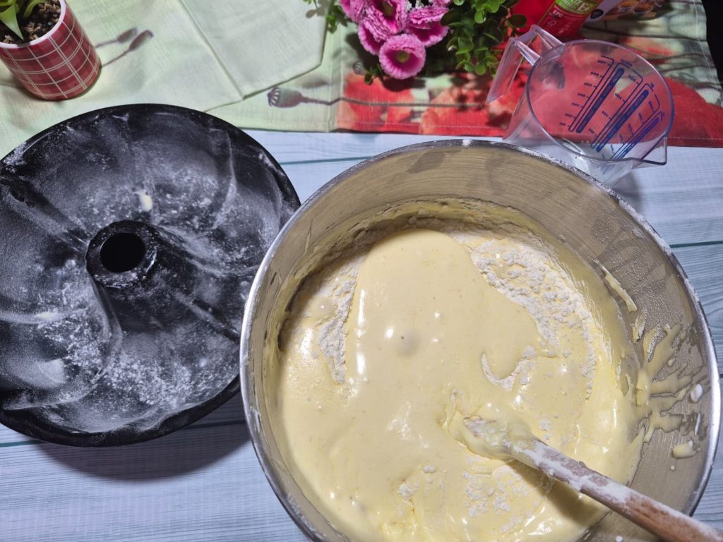 Pour the batter into the prepared bundt pan (buttered and floured). Bake in a preheated conventional oven at 356°F for about 35/40 minutes.