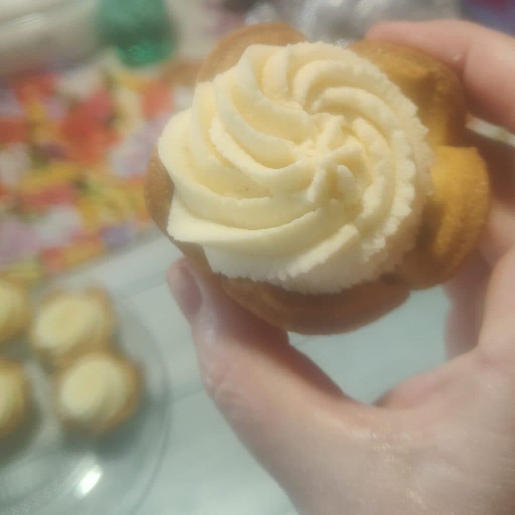 • A very important tip, if you want to prepare them the day before, that’s fine, but put the colored sprinkles later. With the moist cream, the sugar melts and releases color, and you won’t have the wow effect anymore.