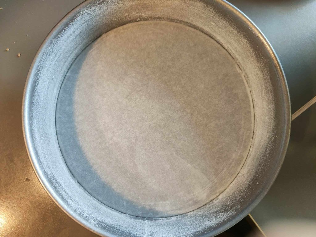 • First, prepare the 9.5-inch springform pan by placing parchment paper on the bottom while the sides should be greased and dusted with flour. Preheat the oven to 340°F. Use static mode.