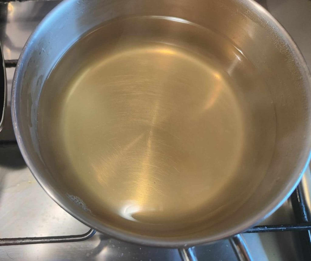 Prepare a quick broth with half an onion, celery, and zucchini. “Keep it warm”.