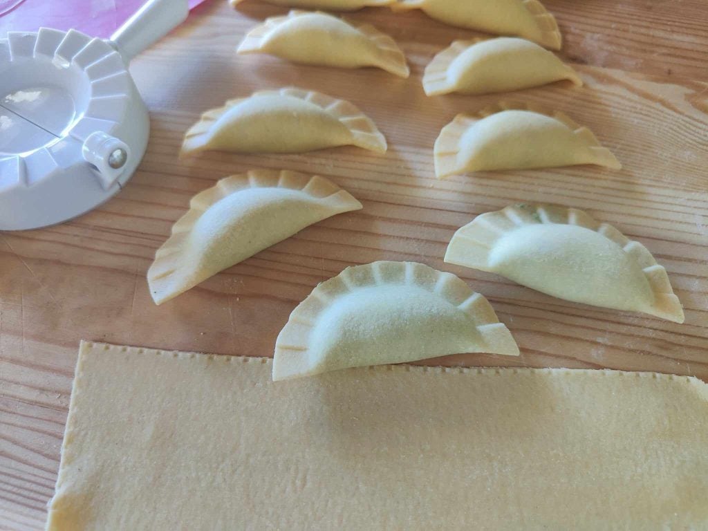 The thickness of the pansotti pasta must be very thin: once cooked, in fact, the intense green of the filling should be visible through the dough.