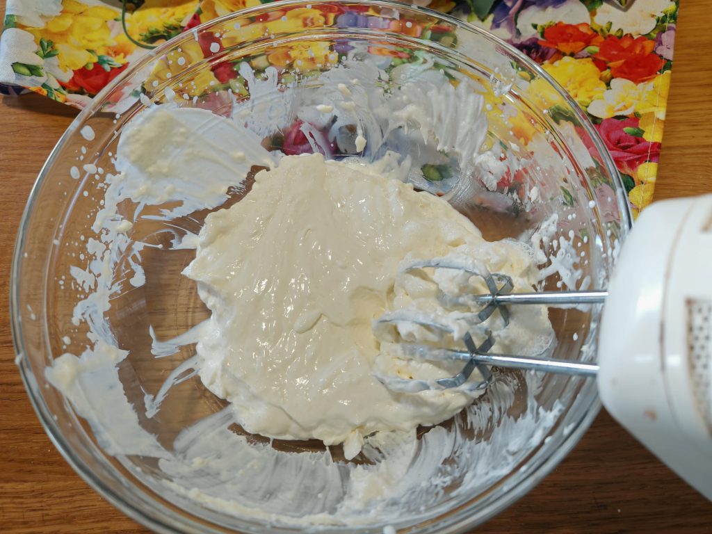 Mascarpone and whipped cream, and your paradise cream is ready to be savored. You can use already sweetened cream as I did, or unsweetened cream to which you add a tablespoon of honey. In summer, it’s also delicious to keep in the freezer as a mock ice cream.