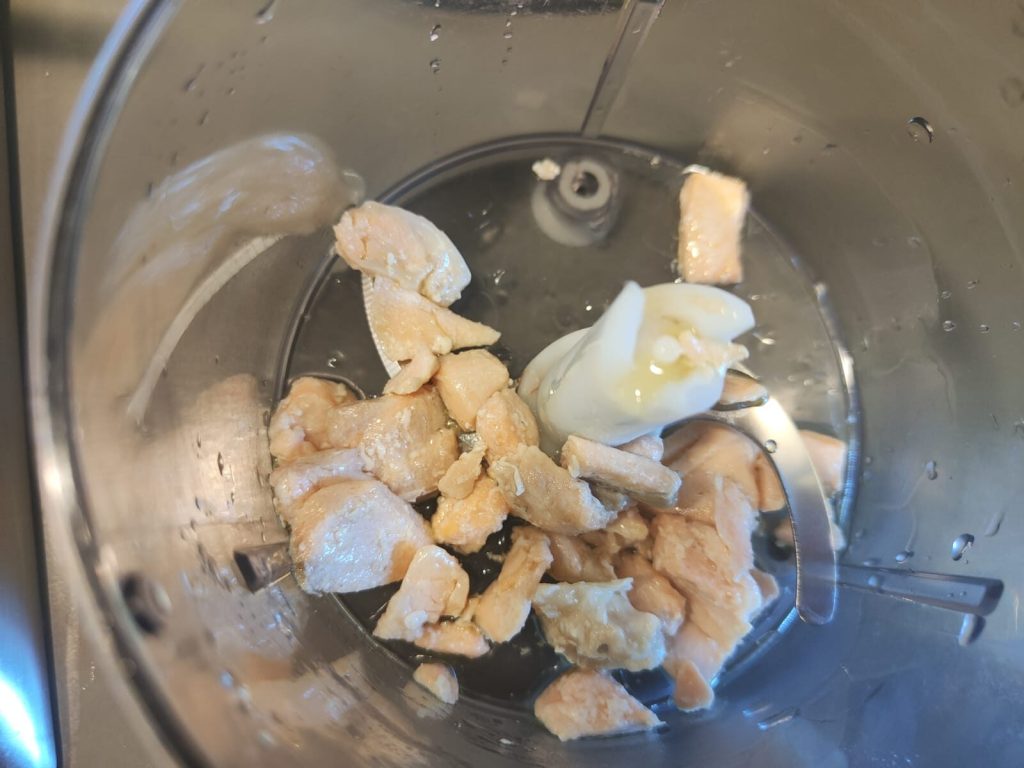 Remove the skin from the salmon fillet and cut it into small pieces. Alternatively, you could also use steaks, although the fillet is leaner.