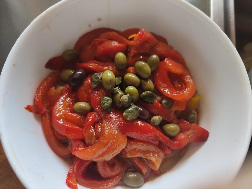 The combination of boiled potatoes, roasted peppers, and tuna in oil creates a creamy texture that delights the palate with every bite. If you like, you can add mayonnaise.