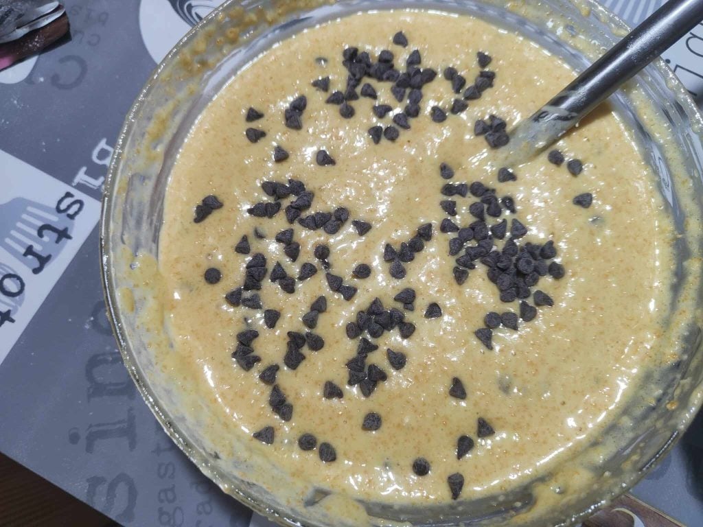The pumpkin adds its color to the cake but also its sweetness and an unprecedented softness. The shredded coconut and chocolate chips take care of the sweet tooth, the shredded coconut makes it melt-in-the-mouth and fragrant, and to top it all, a sprinkle of sugar makes it tasty with every bite.