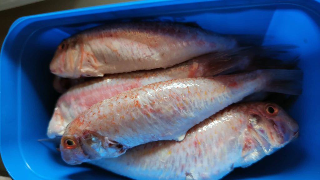 - 1.76 lbs red mullet (weight after cleaning)