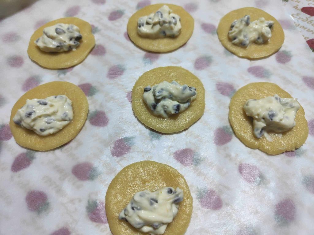 Remember: only put a teaspoon of filling for each cookie, so it doesn’t spill out during baking.