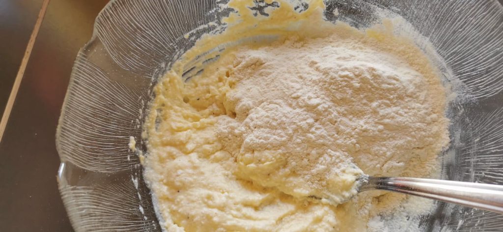 Then add the salt, eggs, flour, and grated cheese and mix until a soft and elastic dough is formed.