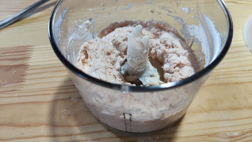 A homemade egg pasta sheet will wrap a filling based on salmon and Ricotta, and spreadable cheese, blended together with spices.