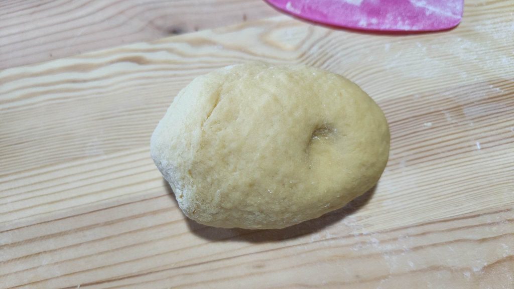First work with a fork then, at length, with your hands, until the dough is dry, firm, and elastic.