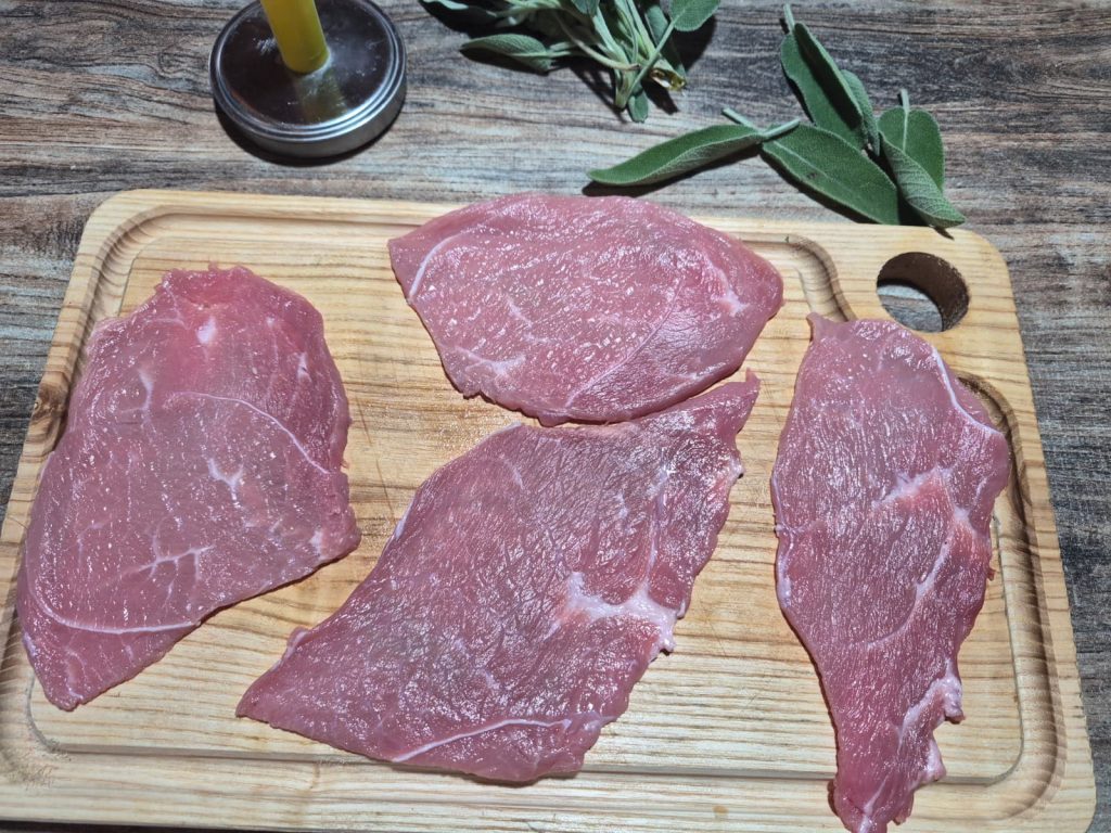 Tip: Pork is more compact than veal, so it’s essential to carefully pound the slices to make them very thin.
