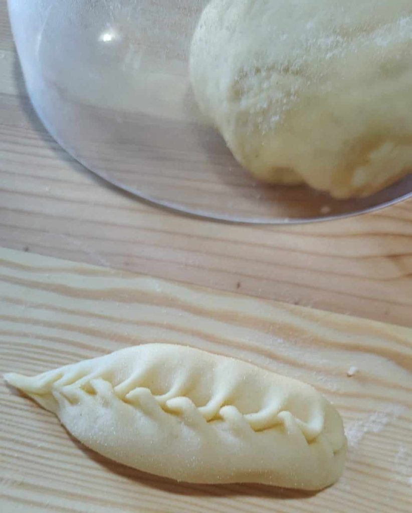 Even before tasting them, we are struck by their elegant appearance: the dough, with its filling, is skillfully embroidered with the characteristic “spighitta” closure, a true distinctive feature of this excellence. The final shape is a drop, with a slightly curved, half-moon profile, and the unmistakable embroidery running the entire length.