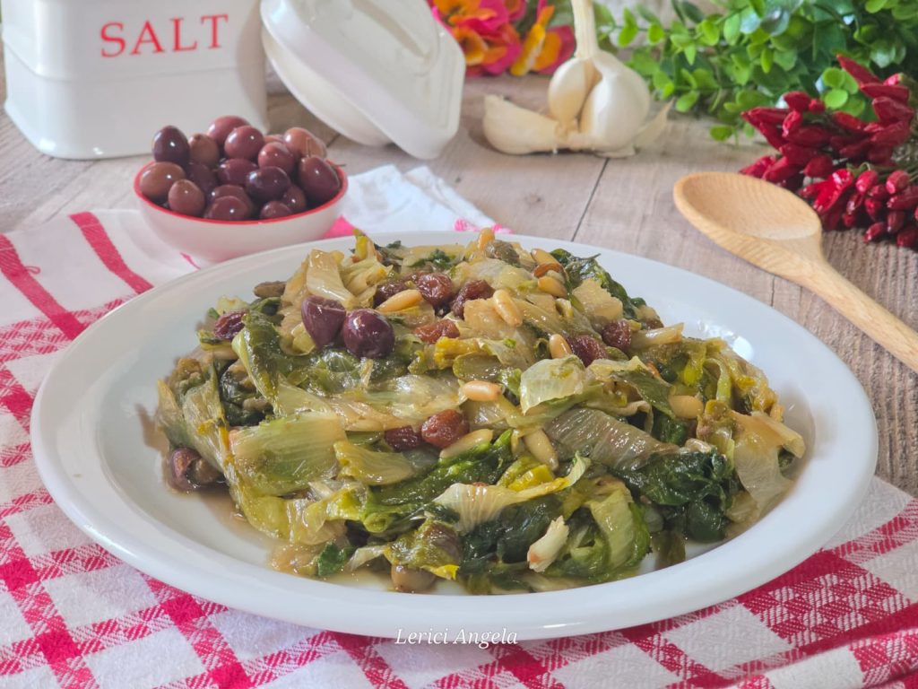 Remove the lid and slightly increase the flame. Cook for another 5 minutes to evaporate any excess liquid.The escarole is ready.
