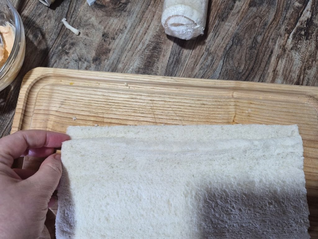 Prepare the slices: Use sandwich bread (the long slices, crustless).