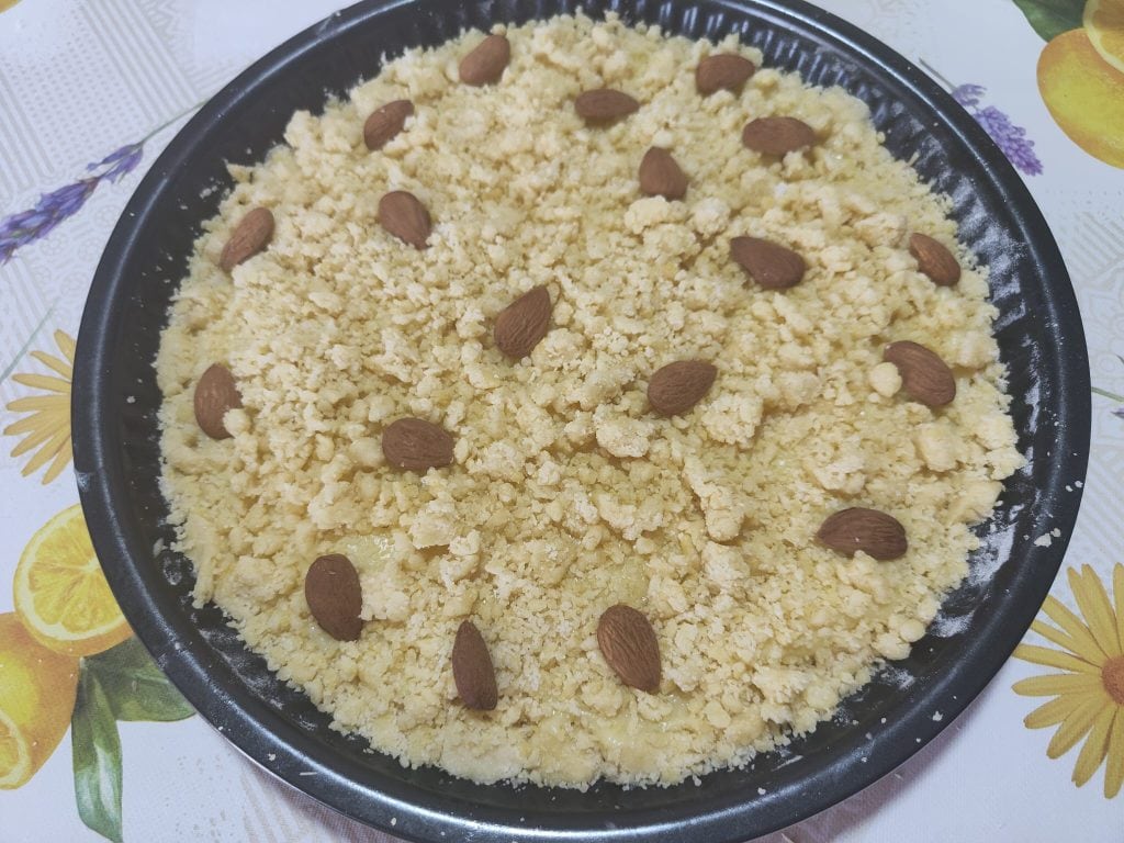 Distribute the crumbled dough evenly on the base, leveling it gently, but without pressing or compacting it.