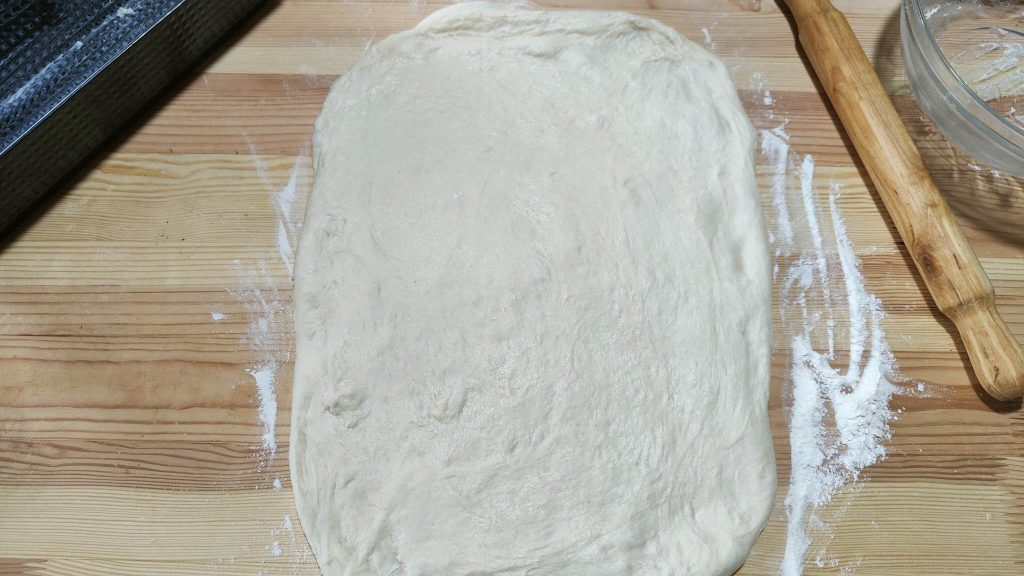 • After one and a half hours, take the dough again and roll it out a little with your hands or a rolling pin to obtain a rectangle.