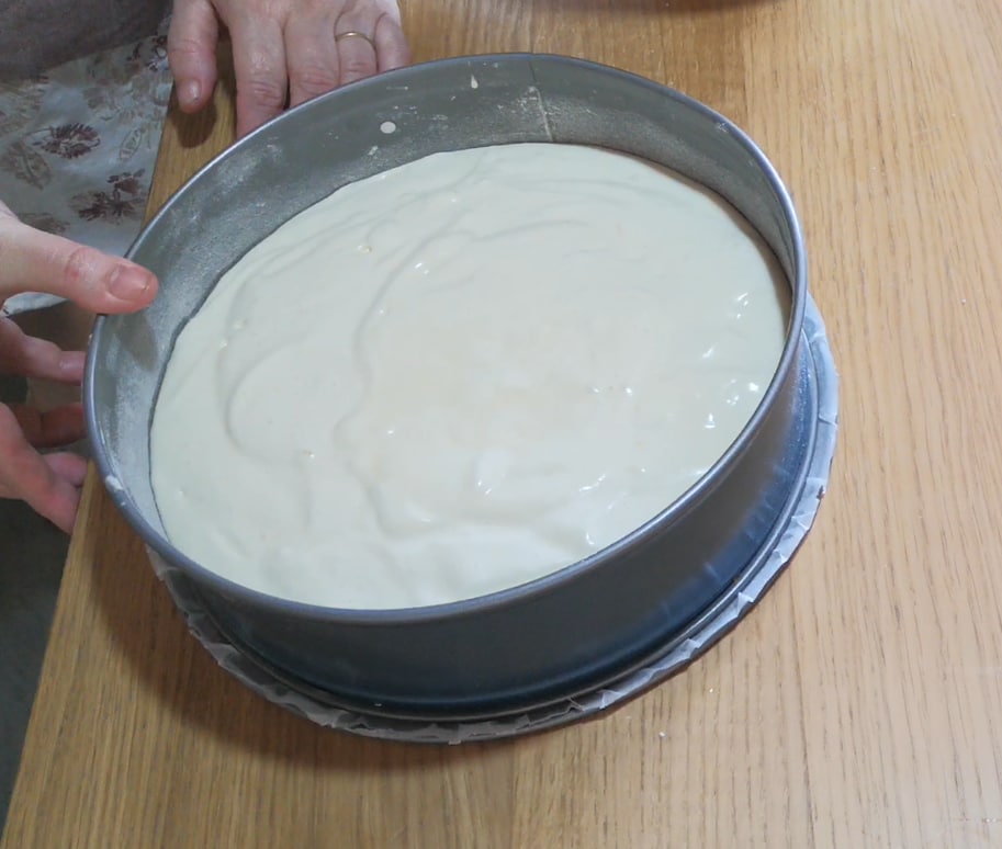 For a 10-inch ………. (200g sugar, 130g flour, 65g potato starch, 4 eggs).