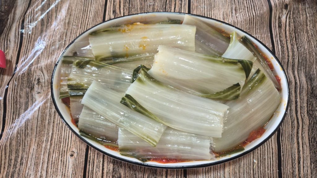 Bring a pot of salted water to a boil and blanch the white ribs for about 8-10 minutes.