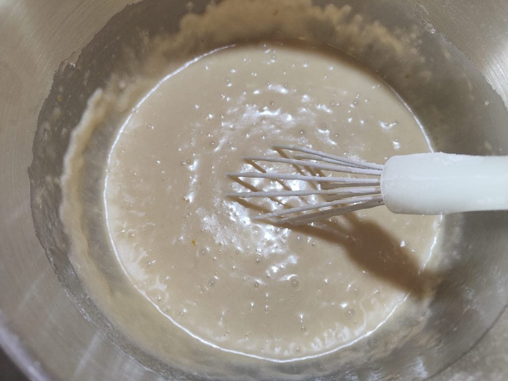 Divide into two equal parts and add cocoa powder to one part of the batter.