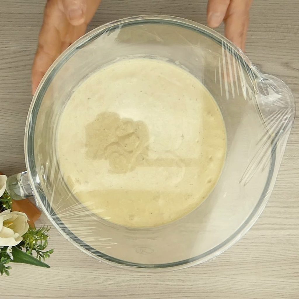 When the mixture becomes homogeneous, cover the bowl with plastic wrap and let it rise for the necessary time to triple in volume.