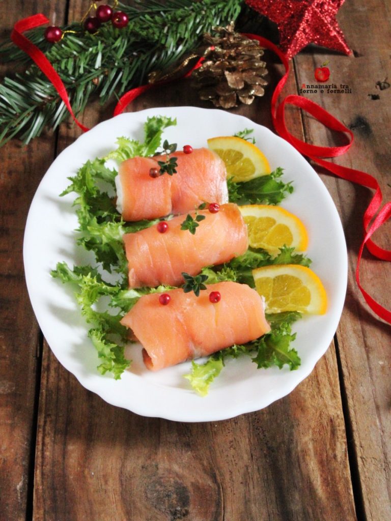 Today’s proposal is Smoked Salmon and Cheese Rolls with Orange Scent, a very easy to make appetizer, as well as tasty, simple, quick, and delightful. Ideal to present among the appetizers for Christmas Eve dinner or lunch, or to propose for an aperitif, or on the occasion of a buffet. It takes very little time to make, and bringing it to the table will definitely be a success. To make this recipe, I used smoked salmon slices and spreadable cheese flavored with orange juice.
