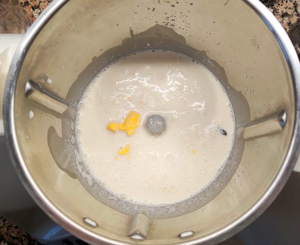 Before serving, cut it into pieces, put it in the Thermomix, and mix for 30 seconds at speed 5.
