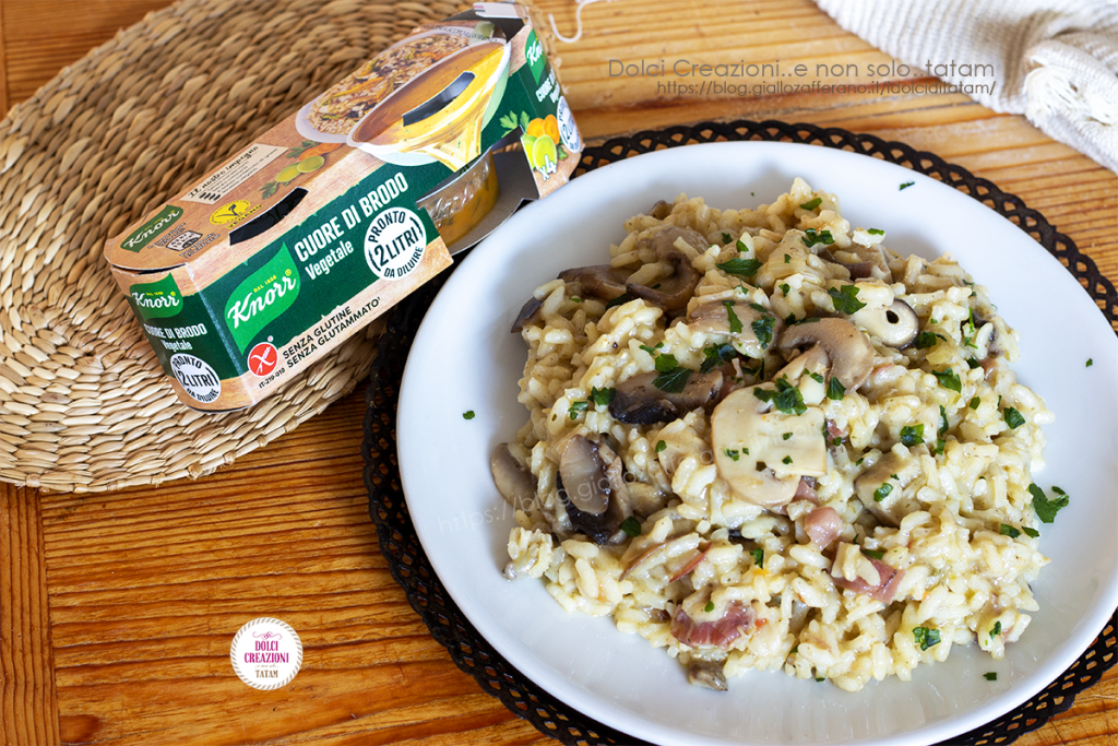 The Risotto with mixed mushrooms and speck is made in autumn using the seasonality of champignon and porcini mushrooms, but by using frozen mushrooms, this risotto will be perfect in any season of the year.