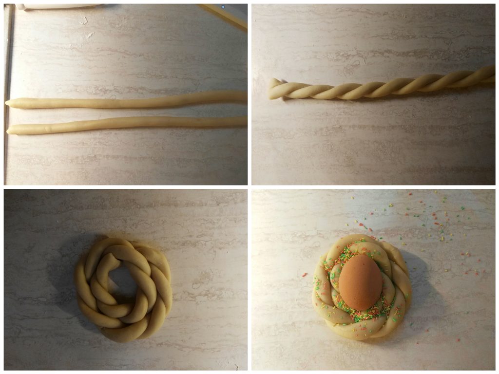 • In the same way you can make simple nests and always place a hard-boiled egg in the center. You can also make a single larger piece and include several eggs, provided the number is odd (the Holy Trinity is odd).