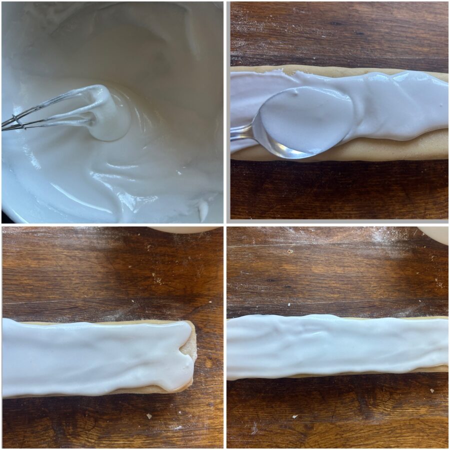 Prepare a glaze by whisking the powdered sugar with the egg white and lemon juice until you obtain a dense, white and fluffy glaze. Pour the glaze over the log and spread it with the back of a spoon.