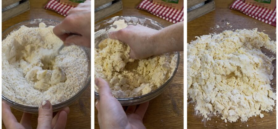 then move to the work surface and work a little more with the tips of your fingers: you should obtain a grainy mixture.