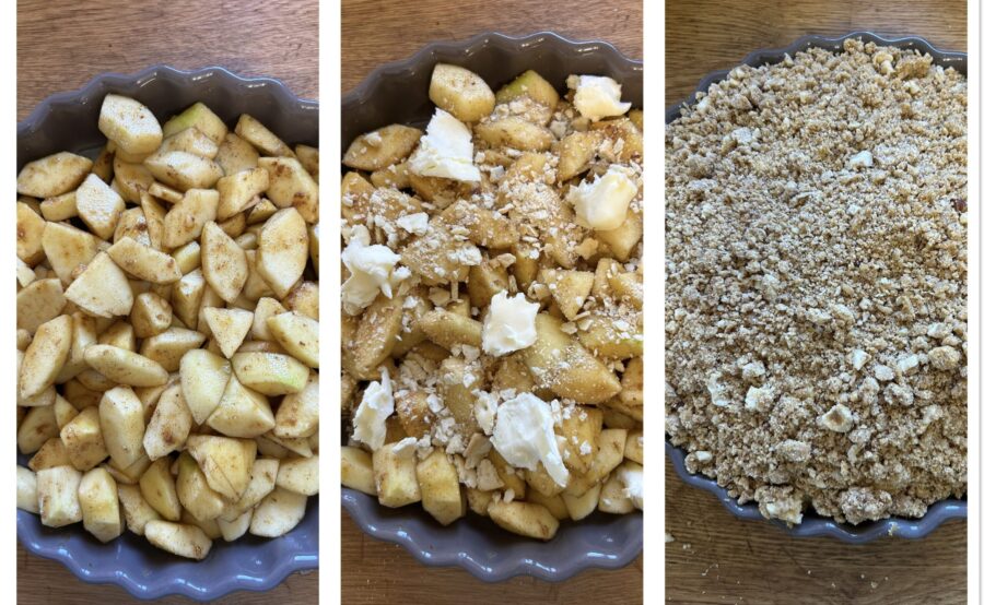 Apple crumble is a “dangerous” dessert because it’s so good you’ll stop eating it only when it’s finished!