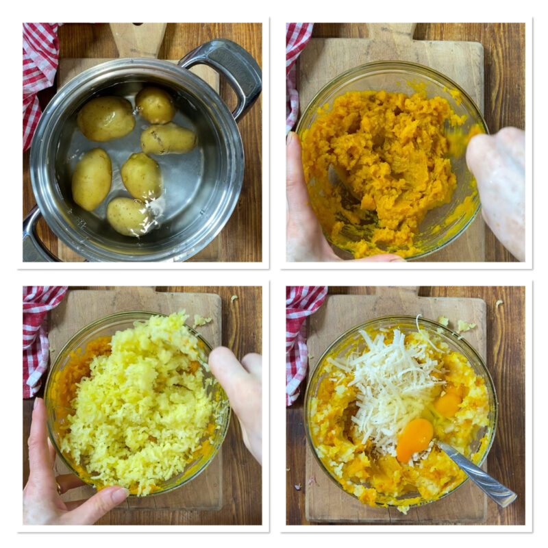 Pumpkin and potato roll with ham and cheese or pumpkin and potato meatloaf, an easy and tasty pumpkin recipe and an original autumn recipe, perfect for the whole family like the potato roll stuffed with ham and cheese or the Potato roll with speck and cheese baked in the oven. Soft, creamy, indulgent and with a gooey center of ham and cheese, the pumpkin and potato meatloaf is a weeknight-saver perfect for any occasion. Easy to prepare and inviting, it can be a dish suitable even for little ones, who often don’t like pumpkin.